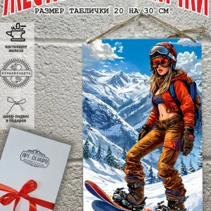 В нашей коллекции также вы найдете стильные фотографии девушек-сноубордисток и горнолыжниц, а также потрясающие панорамы гор и солнечные пейзажи. Наши картины на металле легко моются и не боятся влаги, что позволяет использовать их как внутри, так и снаружи. Удобные варианты крепления включают установку на саморезы или подвешивание на шнуре из натурального джута, который идет в комплекте. Каждая жестяная табличка упакована в защитный пакет и эко-картон, что делает их отличным подарком на любой праздник.