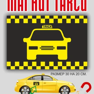 Магнитная наклейка «Такси» от Арт-Декоро изготовленная из гибкого магнита, она имеет большой размер 20×30 см, что делает ее заметной и легко читаемой с расстояния.