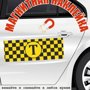 Магнитная наклейка «Такси» от Арт-Декоро изготовленная из гибкого магнита, она имеет большой размер 20×30 см, что делает ее заметной и легко читаемой с расстояния.