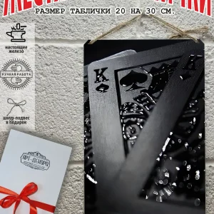 Представляем вам стильные и эффектные жестяные таблички с изображением игральных карт. Наши постеры — жестяные таблички покер, выполнены из металла, который отличается высоким качеством и долговечностью. Размер 20×30 см позволяет легко вписать наши картины в любой интерьер, будь то кухня, гостиная, офис или кафе. Почему стоит выбрать наш постер для интерьера? Яркие и насыщенные цвета не выгорают на солнце и делают ваше пространство выразительным и уникальным. Легкость в уходе: наши картины для интерьера, таблички блэк-джек покер мафия и постеры на стену виски и сигара можно легко мыть. Они не боятся влаги, что позволяет использовать их как в помещениях, так и на улице. Удобные варианты крепления: табличка может быть установлена на саморезы, гвозди, кнопки, клейкую ленту, магниты или повешена на шнур из натурального джута, который идет в комплекте. Упаковка: каждая табличка карта туз пики фэнтези красивые игральные карты колода казино аккуратно упакована в защитный пакет и дополнительно завернута в эко-картон, а также дополнительно в комплекте идет подарочная упаковка, атласная лента и открытка — что делает её отличным подарком на любой случай – от дня рождения до новоселья – готовый подарок. Мы гордимся тем, что предлагаем более 15 000 уникальных дизайнов, включая постеры на стену для интерьера, постер на заказ карты bicycle и прикольные металлические таблички, чтобы каждый мог найти что-то для себя. Наши постеры разделены на коллекции разных серий, что позволяет заказать несколько табличек в едином стиле и создать неповторимую композицию у вас дома, не упустите возможность сделать свой дом стильным – добавляйте товары в избранное, чтобы первыми узнавать о скидках и новинках! Создайте атмосферу уюта и стиля с нашими металлическими картинами и постерами для интерьера уже сегодня!