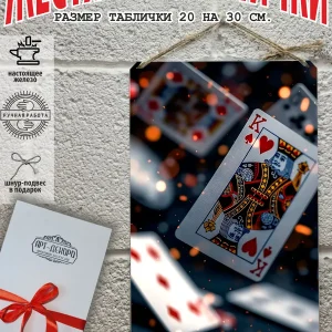 Представляем вам стильные и эффектные жестяные таблички с изображением игральных карт. Наши постеры — жестяные таблички покер, выполнены из металла, который отличается высоким качеством и долговечностью. Размер 20×30 см позволяет легко вписать наши картины в любой интерьер, будь то кухня, гостиная, офис или кафе. Почему стоит выбрать наш постер для интерьера? Яркие и насыщенные цвета не выгорают на солнце и делают ваше пространство выразительным и уникальным. Легкость в уходе: наши картины для интерьера, таблички блэк-джек покер мафия и постеры на стену виски и сигара можно легко мыть. Они не боятся влаги, что позволяет использовать их как в помещениях, так и на улице. Удобные варианты крепления: табличка может быть установлена на саморезы, гвозди, кнопки, клейкую ленту, магниты или повешена на шнур из натурального джута, который идет в комплекте. Упаковка: каждая табличка карта туз пики фэнтези красивые игральные карты колода казино аккуратно упакована в защитный пакет и дополнительно завернута в эко-картон, а также дополнительно в комплекте идет подарочная упаковка, атласная лента и открытка — что делает её отличным подарком на любой случай – от дня рождения до новоселья – готовый подарок. Мы гордимся тем, что предлагаем более 15 000 уникальных дизайнов, включая постеры на стену для интерьера, постер на заказ карты bicycle и прикольные металлические таблички, чтобы каждый мог найти что-то для себя. Наши постеры разделены на коллекции разных серий, что позволяет заказать несколько табличек в едином стиле и создать неповторимую композицию у вас дома, не упустите возможность сделать свой дом стильным – добавляйте товары в избранное, чтобы первыми узнавать о скидках и новинках! Создайте атмосферу уюта и стиля с нашими металлическими картинами и постерами для интерьера уже сегодня!