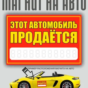 Магнитная наклейка на машину от АРТ-Декоро – это стильный и удобный способ продать ваш автомобиль. Изготовленная из качественного магнитного материала, наклейка легко крепится и снимается, не оставляя следов на кузове. Матовая поверхность наклейки придает ей элегантный вид. Наклейку можно мыть, она не боиться влаги.