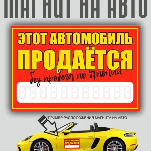Магнитная наклейка «Продам авто» может быть использована для временного нанесения вместо знака с присоской или других подобных вещей. Это особенно удобно, если вы хотите быстро и без лишних затрат продать свой автомобиль.