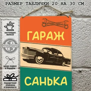 комплектация: именная табличка для гаража, шнур-подвес из натурального джута, подарочная упаковка, атласная лента, открытка, защитная упаковка от царапин, транспортировочная упаковка