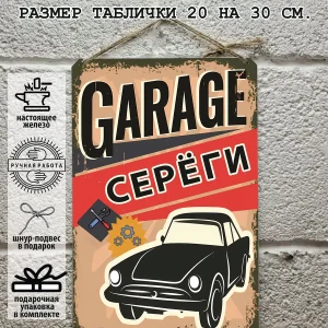 комплектация: именная табличка для гаража, шнур-подвес из натурального джута, подарочная упаковка, атласная лента, открытка, защитная упаковка от царапин, транспортировочная упаковка