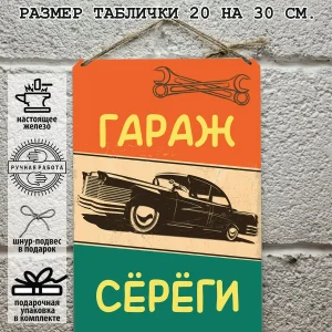 комплектация: именная табличка для гаража, шнур-подвес из натурального джута, подарочная упаковка, атласная лента, открытка, защитная упаковка от царапин, транспортировочная упаковка