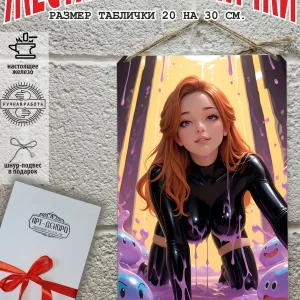 Картина выполнена в виде железной таблички размером 20х30 см, что придает ей особый шарм. Изображение наносится прямо на металл, это гарантирует его долговечность и устойчивость к влаге, можно мыть водой.