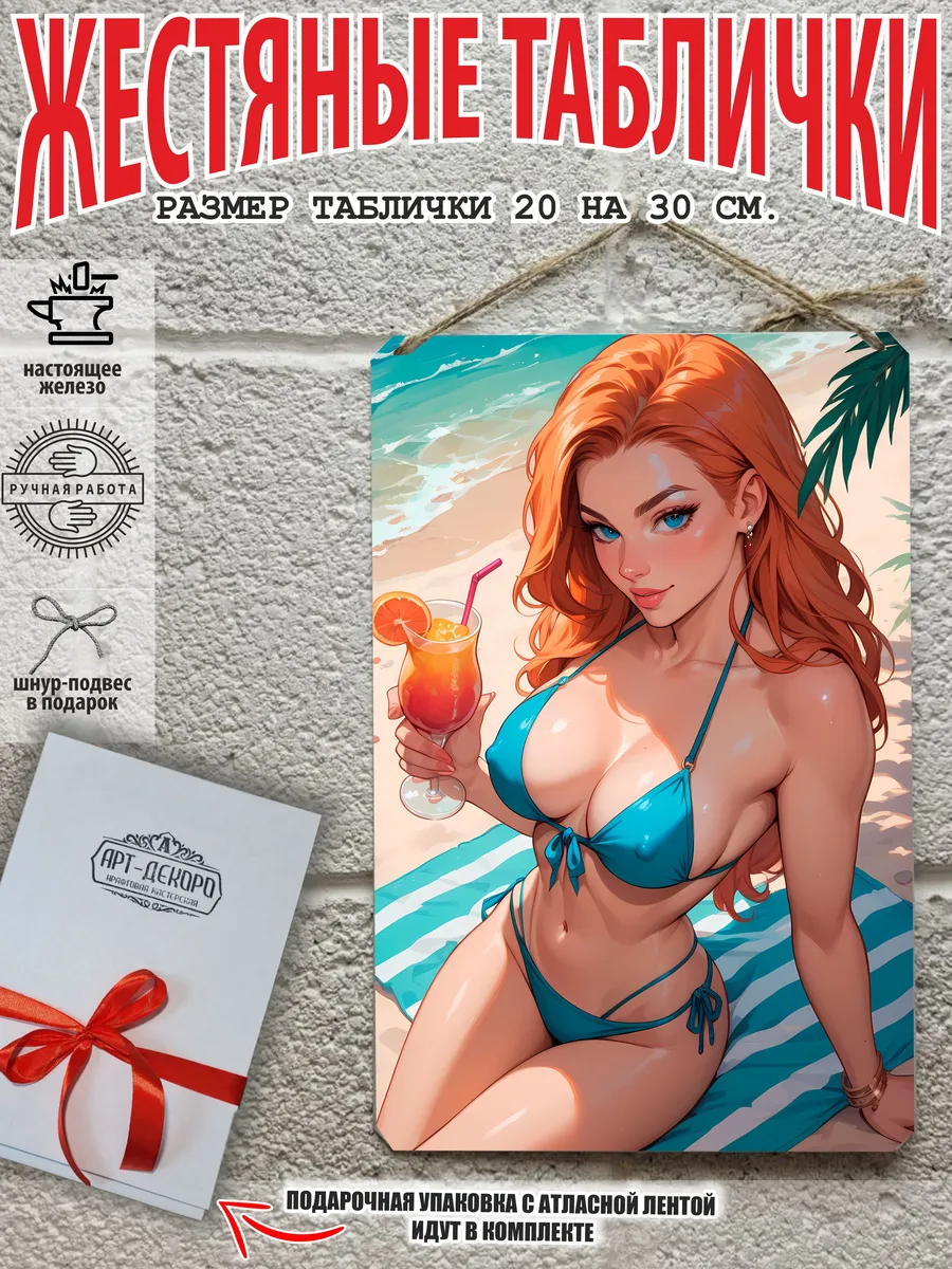 Картина выполнена в виде железной таблички размером 20х30 см, что придает ей особый шарм. Изображение наносится прямо на металл, это гарантирует его долговечность и устойчивость к влаге, можно мыть водой.