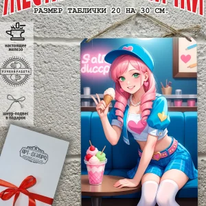 Картина выполнена в виде железной таблички размером 20х30 см, что придает ей особый шарм. Изображение наносится прямо на металл, это гарантирует его долговечность и устойчивость к влаге, можно мыть водой.