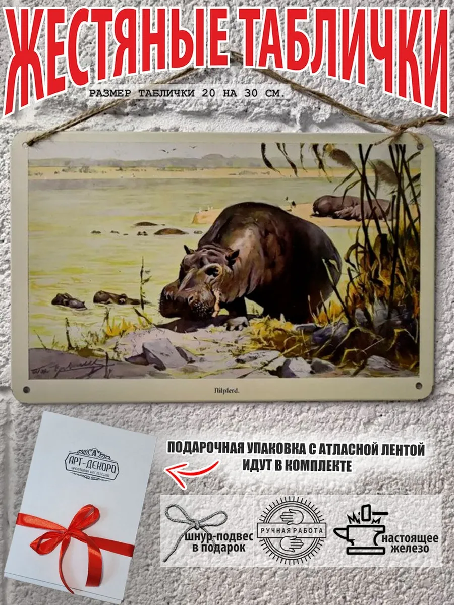 бегемот табличка металлическая