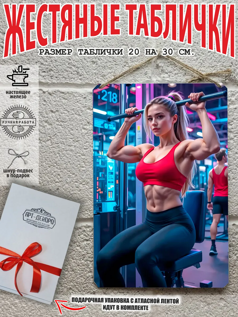 Постеры фитнес и бодибилдинг станут отличным подарком другу, коллеге, спортсмену, тренеру, а также папе или брату. Железная табличка на стену отлично впишется в дизайн комнаты, спортзала. Постер интерьерный станет прекрасным подарком для спортсменов на любой праздник: 23 февраля, новый год, день рождения. Картину Бодибилдер и фитнес девушки оценят истинные фанаты ведь это превосходный мотиватор. Плакат культуризм — яркий, легкий, удобно крепится на любую поверхность. Постер картина в формате А4 — придется по вкусу подростку и добавит изюминку в интерьер. В нашем магазине ты найдешь большой выбор постеров и картин на любой вкус: спорт, фитнес, спортсмены. Добавляй бренд в «избранное», чтобы не пропустить новинки. В упакованной эко-коробочке из картона тебя ждет особенный подарочный постер. Этот гифт бокс станет идеальным сюрпризом для близкого человека на любое событие. Жестяная табличка, выполненная из 100% металла, дополнена мотивирующей цитатой. Размеры постера — 20 см х 30 см. Он станет оригинальным украшением для дома и отличным мотиватором. Шнур-подвес из натурального джута придают этому интерьерному плакату особую изысканность и привлекательность. Такой прикольный постер можно повесить на стену в гостиной или спальне как уникальное украшение. Этот подарок в эко-упаковке из белого картона с фирменным логотипом в комплекте с подарочной атласной лентой обладает не только прекрасным внешним видом, но и вдохновляющим содержанием — мотивирующая цитата на постере будет напоминать о целях и достижениях каждый день. Подари этот оригинальный подарок giftbox гифт бокс прикольный подарок близкому человеку, чтобы поднять ему настроение и добавить мотивации. Всё, что вам останется сделать после получения товара – убрать защитную упаковку, повязать бант – идеальный подарок готов! Внешняя упаковка — это трехслойный картон, который защитит ваш сувенир при транспортировке. Сама табличка упакована в блестящий пакет.