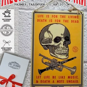 Железная жестяная табличка ручной работы, выполнена из 100% металла имеет классический размер 20*30 см. Края загнуты на 5 мм внутрь. Изображение наносится прямо на железо. Яркие насыщенные и объемные цвета. Табличку можно использовать как в помещении, так и на улице она не боится влаги. Варианты крепления таблички: на саморезы-шурупы, в табличке по углам имеются отверстия или на шнур-подвес из натурального джута, который идёт в подарок. Сделано в России. Упакована табличка в прозрачный открывающийся пакет для защиты от царапин при транспортировке. Внешняя дополнительная эко-упаковка из картона, подходит для подарка. Плакат череп — отличный подарок и стильный декор любого интерьера. Постер череп на жести советский- лучший подарок. Жестяная табличка череп — это отличный декор любого интерьера. Табличка на стену черепа — украшение кухни, дома, офиса, кафе, кофейни. Картина этот ретро стиль, всегда в моде. Подарок начальнику, другу, ретро постер на жести. Декоративная жесть — этот стиль всегда в моде это картина для квартиры и дачи. Вся коллекция табличек ч тематикой черепа в нашем профиле. Так же в нашем магазине более 15 000 видов табличек из разный коллекций, каждый найдет себе по душе! Добавляйте товар в избранное, что бы первыми узнавать о скидках и новинках.