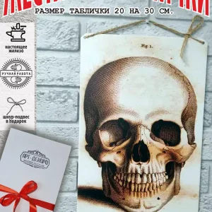 Железная жестяная табличка ручной работы, выполнена из 100% металла имеет классический размер 20*30 см. Края загнуты на 5 мм внутрь. Изображение наносится прямо на железо. Яркие насыщенные и объемные цвета. Табличку можно использовать как в помещении, так и на улице она не боится влаги. Варианты крепления таблички: на саморезы-шурупы, в табличке по углам имеются отверстия или на шнур-подвес из натурального джута, который идёт в подарок. Сделано в России. Упакована табличка в прозрачный открывающийся пакет для защиты от царапин при транспортировке. Внешняя дополнительная эко-упаковка из картона, подходит для подарка. Плакат череп — отличный подарок и стильный декор любого интерьера. Постер череп на жести советский- лучший подарок. Жестяная табличка череп — это отличный декор любого интерьера. Табличка на стену черепа — украшение кухни, дома, офиса, кафе, кофейни. Картина этот ретро стиль, всегда в моде. Подарок начальнику, другу, ретро постер на жести. Декоративная жесть — этот стиль всегда в моде это картина для квартиры и дачи. Вся коллекция табличек ч тематикой черепа в нашем профиле. Так же в нашем магазине более 15 000 видов табличек из разный коллекций, каждый найдет себе по душе! Добавляйте товар в избранное, что бы первыми узнавать о скидках и новинках.