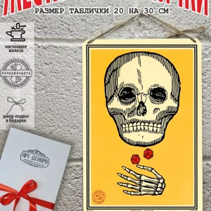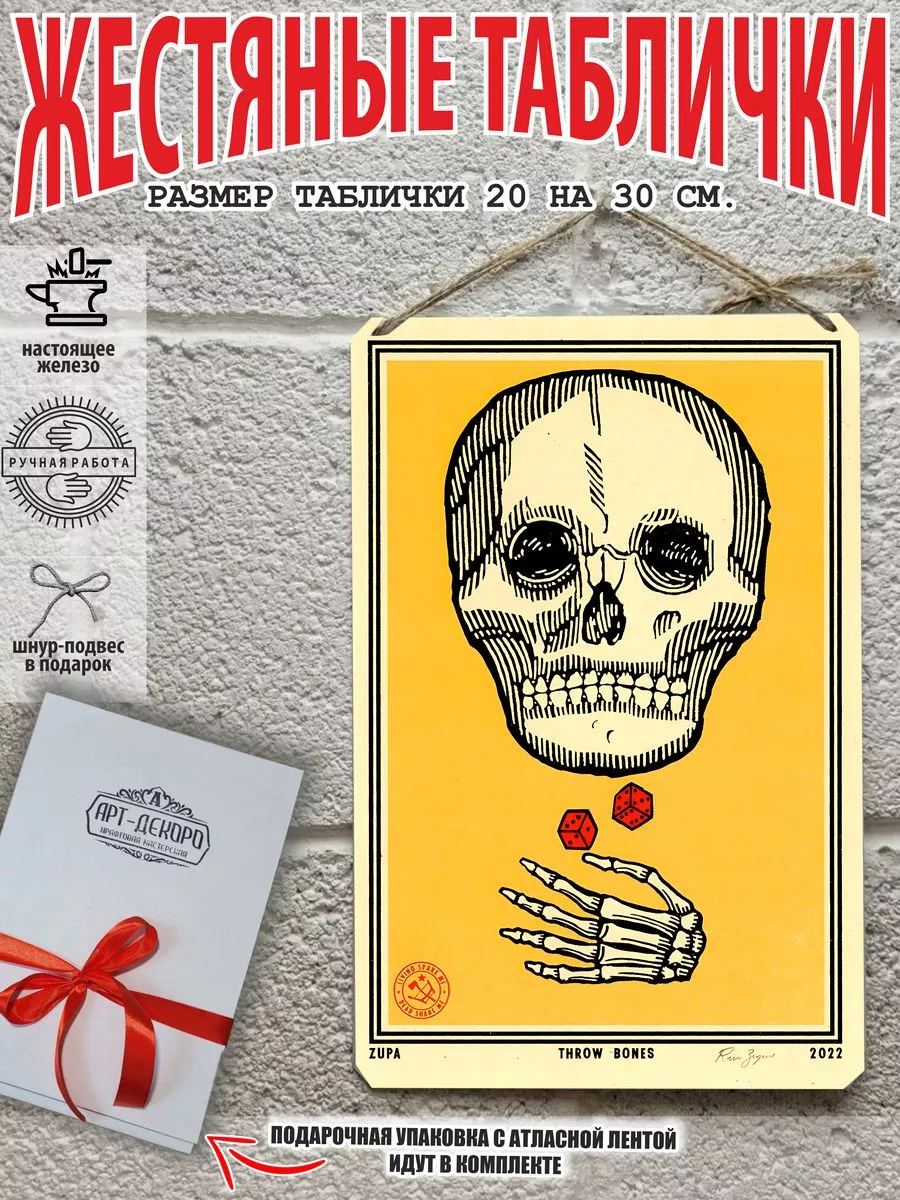Железная жестяная табличка ручной работы, выполнена из 100% металла имеет классический размер 20*30 см. Края загнуты на 5 мм внутрь. Изображение наносится прямо на железо. Яркие насыщенные и объемные цвета. Табличку можно использовать как в помещении, так и на улице она не боится влаги. Варианты крепления таблички: на саморезы-шурупы, в табличке по углам имеются отверстия или на шнур-подвес из натурального джута, который идёт в подарок. Сделано в России. Упакована табличка в прозрачный открывающийся пакет для защиты от царапин при транспортировке. Внешняя дополнительная эко-упаковка из картона, подходит для подарка. Плакат череп — отличный подарок и стильный декор любого интерьера. Постер череп на жести советский- лучший подарок. Жестяная табличка череп — это отличный декор любого интерьера. Табличка на стену черепа — украшение кухни, дома, офиса, кафе, кофейни. Картина этот ретро стиль, всегда в моде. Подарок начальнику, другу, ретро постер на жести. Декоративная жесть — этот стиль всегда в моде это картина для квартиры и дачи. Вся коллекция табличек ч тематикой черепа в нашем профиле. Так же в нашем магазине более 15 000 видов табличек из разный коллекций, каждый найдет себе по душе! Добавляйте товар в избранное, что бы первыми узнавать о скидках и новинках.