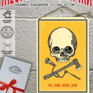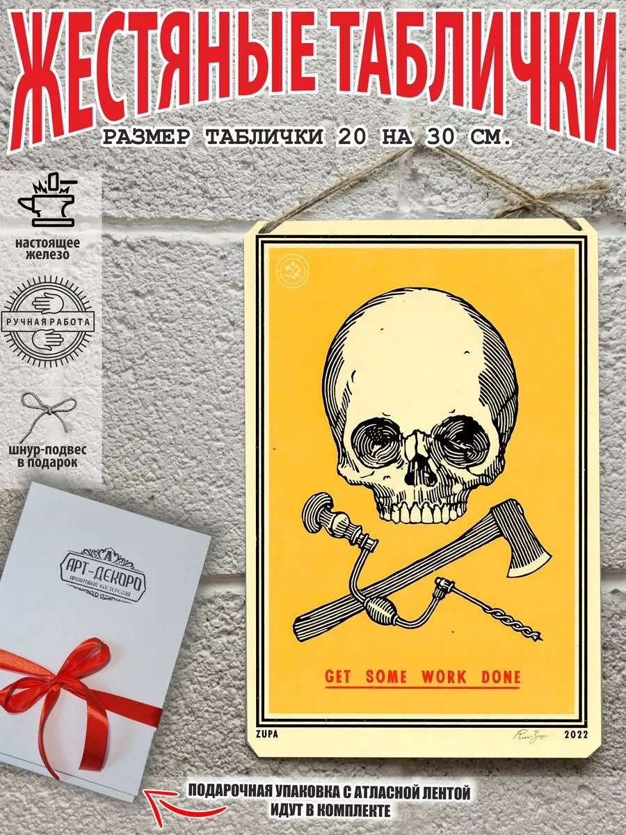 Железная жестяная табличка ручной работы, выполнена из 100% металла имеет классический размер 20*30 см. Края загнуты на 5 мм внутрь. Изображение наносится прямо на железо. Яркие насыщенные и объемные цвета. Табличку можно использовать как в помещении, так и на улице она не боится влаги. Варианты крепления таблички: на саморезы-шурупы, в табличке по углам имеются отверстия или на шнур-подвес из натурального джута, который идёт в подарок. Сделано в России. Упакована табличка в прозрачный открывающийся пакет для защиты от царапин при транспортировке. Внешняя дополнительная эко-упаковка из картона, подходит для подарка. Плакат череп — отличный подарок и стильный декор любого интерьера. Постер череп на жести советский- лучший подарок. Жестяная табличка череп — это отличный декор любого интерьера. Табличка на стену черепа — украшение кухни, дома, офиса, кафе, кофейни. Картина этот ретро стиль, всегда в моде. Подарок начальнику, другу, ретро постер на жести. Декоративная жесть — этот стиль всегда в моде это картина для квартиры и дачи. Вся коллекция табличек ч тематикой черепа в нашем профиле. Так же в нашем магазине более 15 000 видов табличек из разный коллекций, каждый найдет себе по душе! Добавляйте товар в избранное, что бы первыми узнавать о скидках и новинках.