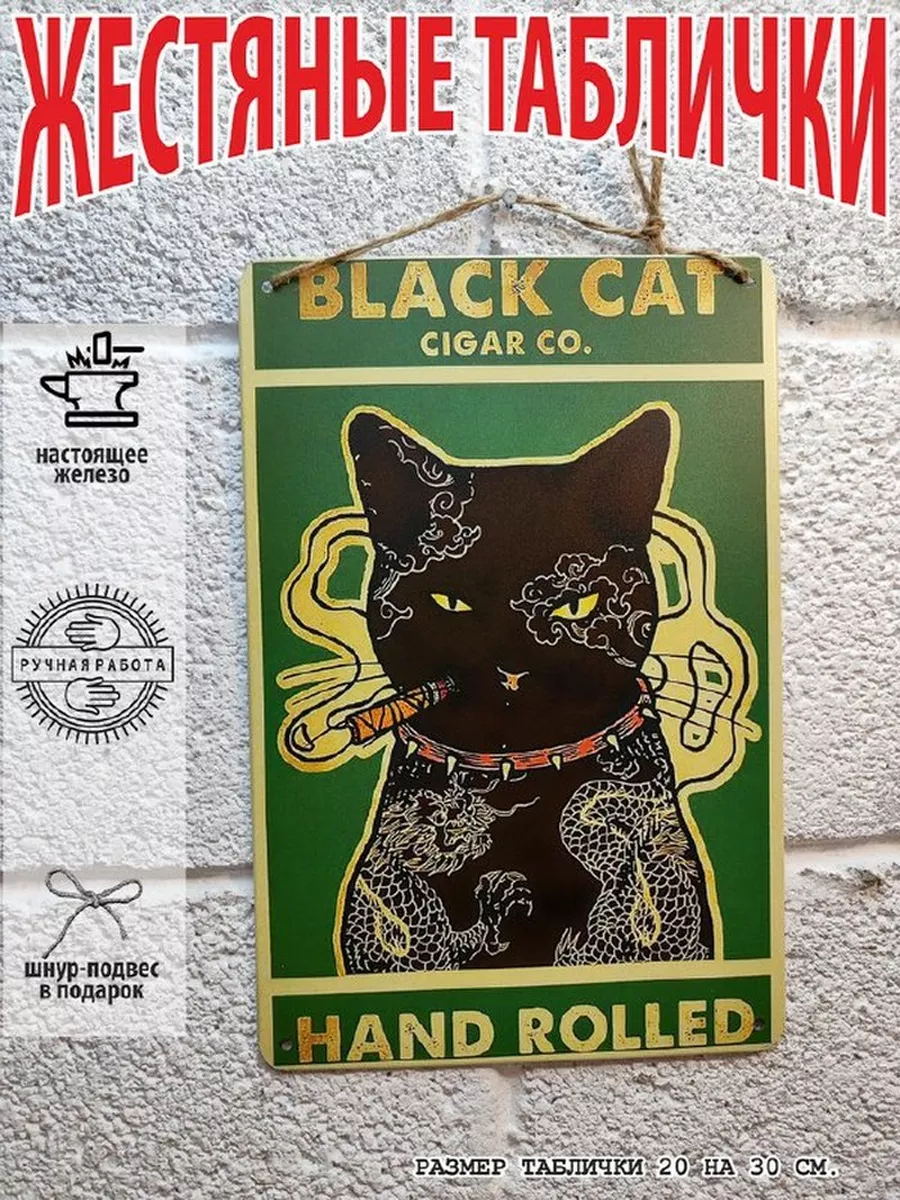 черный кот с сигаретой постер