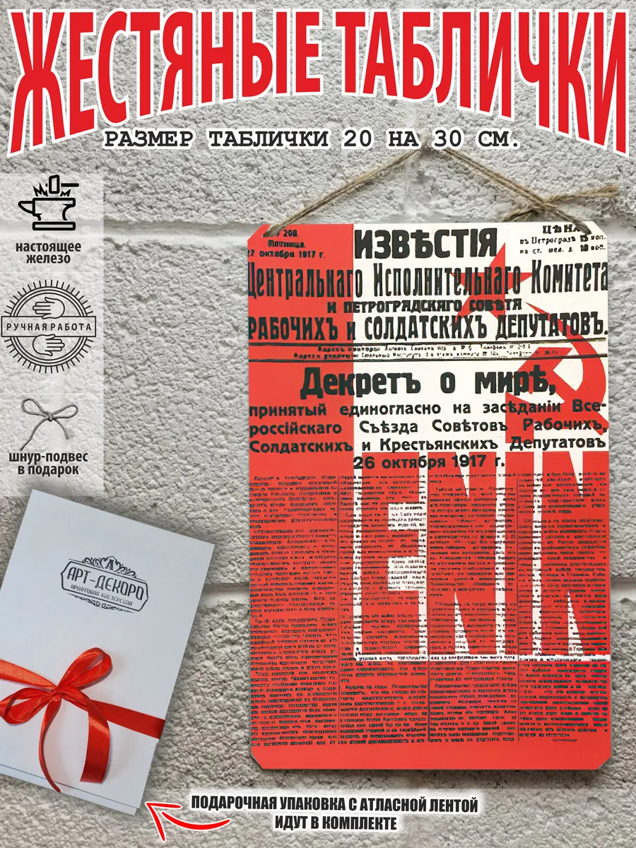 СССР Железная жестяная табличка ручной работы, выполнена из 100% металла имеет классический размер 20*30 см. Края загнуты на 5 мм внутрь. Изображение наносится прямо на металл. Яркие насыщенные и объемные цвета. Можно использовать как в помещении, так и на улице она не боится влаги. Варианты крепления : на саморезы-шурупы, по углам имеются отверстия или на шнур-подвес из натурального джута, который идёт в подарок. Сделано в России. Упакована в прозрачный открывающийся пакет для защиты от царапин при транспортировке. Внешняя дополнительная эко-упаковка из картона, подходит для подарка. Плакат советский — отличный подарок и стильный декор любого интерьера. Сувенир советская агитация — хороший презент. Картинка советская пропаганда — это отличный декор любого интерьера. Табличка на стену портрет Сталин Ленин — украшение кухни, дома, офиса, кафе, кофейни. Картина советский союз этот ретро стиль который всегда в моде. Подарок начальнику, другу, винтажный ретро советский постер на жести. Декоративная жесть это картина для квартиры и дачи. Вся коллекция табличек с тематикой советские плакаты в нашем профиле в бренде СССР. Так же в нашем магазине более 15 000 видов табличек из разный коллекций, каждый найдет себе по душе! Добавляйте товар в избранное, что бы первыми узнавать о скидках и новинках.