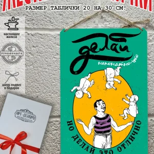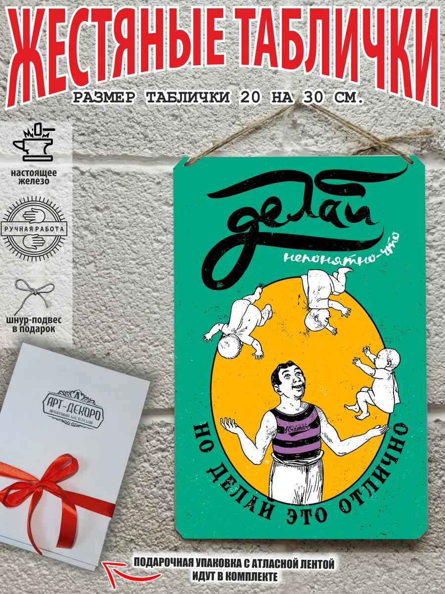 Обратите внимание! У нас все таблички идут сериями, можно создать отличную композицию в одном стиле. Кроме того, таблички это стильный и недорогой подарок по любому поводу. Прикольные штуки железная табличка картинки мотиваторы позитивные и демотиваторы из 100% металла от нашего бренда будет прекрасным украшением для квартиры, дома, офиса, бара или кафе. Мотивация это прикол, часть нашей жизни, картина мотиватор всегда улучшает настроение. Сочетая в себе эстетику и прочность, декоративная металлические мотивационные карточки являются непременным элементом декора как для внутренних помещений, так и для уличных зон. Выберите из нашего широкого ассортимента аксессуар, который подойдет именно вам. Жестяная табличка Арт-Декоро крепится на саморезы, шурупы или на специальный шнур из натурального джута который идет в комплекте с каждым заказом как бесплатный подарок, что позволяет разнообразить способы использования. Плакаты с приколами можно повесить на стену в гостиной, спальне, кухне или на улице, чтобы создать атмосферу, которая отражает индивидуальность. Таблички можно мыть, они не выцветают долгие годы. Картина открытки постер плакат стикеры наклейки приколы мотивация все это сочетается в наших изделиях. Мы гордимся тем, что каждое изделие изготовлено из настоящего металла, краска наносится прямо на железо. Это гарантирует ее долговечность и надежность. Красивая и изысканная отделка обеспечивает эффектный внешний вид и придает обстановке особое очарование. Подарите возможность добавить изюминку в интерьер и превратите пространство в уникальное, а также уютное место, которое будет отличаться от всех остальных. В нашем магазине Вы найдёте большой выбор декора интерьера и создадите превосходную обстановку.