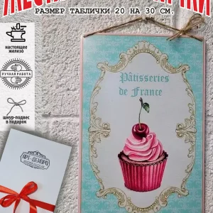 Железная жестяная табличка выполнена из 100% металла имеет классический размер 20*30 см. Края загнуты на 5 мм внутрь. Изображение наносится прямо на железо. Яркие насыщенные и объемные цвета. Табличку можно использовать как в помещении, так и на улице она не боится влаги. Варианты крепления таблички: на саморезы-шурупы, в табличке по углам имеются отверстия или на шнур-подвес из натурального джута, который идёт в подарок. Сделано в России. Упакована табличка в прозрачный открывающийся пакет для защиты от царапин при транспортировке. Внешняя дополнительная эко-упаковка из картона, подходит для подарка. Плакат десерт — отличный подарок и стильный декор любого интерьера. Вся коллекция табличек нашем профиле. Так же в нашем магазине более 10 000 видов табличек из разный коллекций, каждый найдет себе по душе! Добавляйте товар в избранное, что бы первыми узнавать о скидках и новинках.