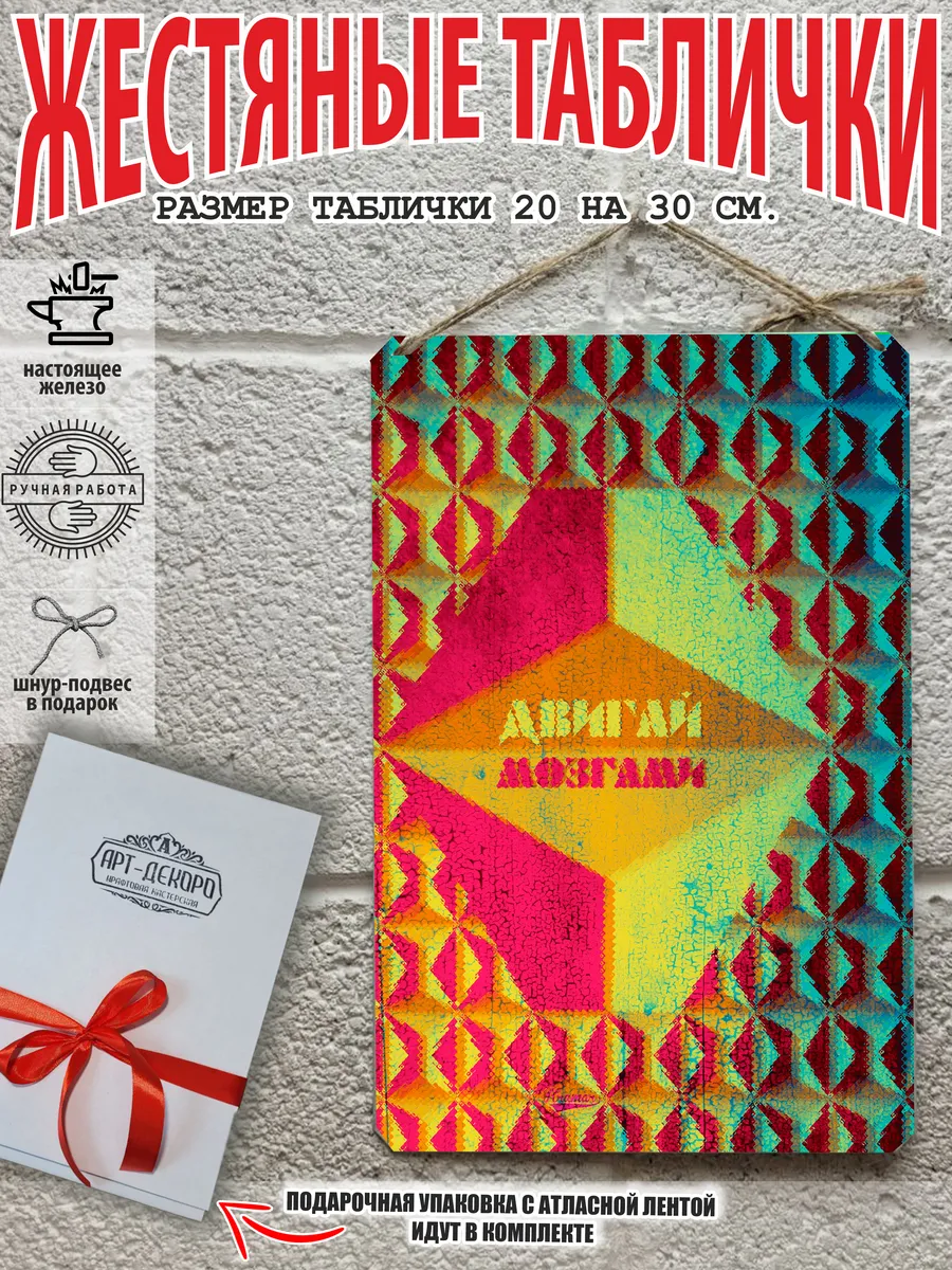 Обратите внимание! У нас все таблички идут сериями, можно создать отличную композицию в одном стиле. Кроме того, таблички это стильный и недорогой подарок по любому поводу. Прикольные штуки железная табличка картинки мотиваторы позитивные и демотиваторы из 100% металла от нашего бренда будет прекрасным украшением для квартиры, дома, офиса, бара или кафе. Мотивация это прикол, часть нашей жизни, картина мотиватор всегда улучшает настроение. Сочетая в себе эстетику и прочность, декоративная металлические мотивационные карточки являются непременным элементом декора как для внутренних помещений, так и для уличных зон. Выберите из нашего широкого ассортимента аксессуар, который подойдет именно вам. Жестяная табличка Арт-Декоро крепится на саморезы, шурупы или на специальный шнур из натурального джута который идет в комплекте с каждым заказом как бесплатный подарок, что позволяет разнообразить способы использования. Плакаты с приколами можно повесить на стену в гостиной, спальне, кухне или на улице, чтобы создать атмосферу, которая отражает индивидуальность. Таблички можно мыть, они не выцветают долгие годы. Картина открытки постер плакат стикеры наклейки приколы мотивация все это сочетается в наших изделиях. Мы гордимся тем, что каждое изделие изготовлено из настоящего металла, краска наносится прямо на железо. Это гарантирует ее долговечность и надежность. Красивая и изысканная отделка обеспечивает эффектный внешний вид и придает обстановке особое очарование. Подарите возможность добавить изюминку в интерьер и превратите пространство в уникальное, а также уютное место, которое будет отличаться от всех остальных. В нашем магазине Вы найдёте большой выбор декора интерьера и создадите превосходную обстановку.