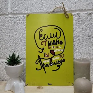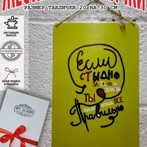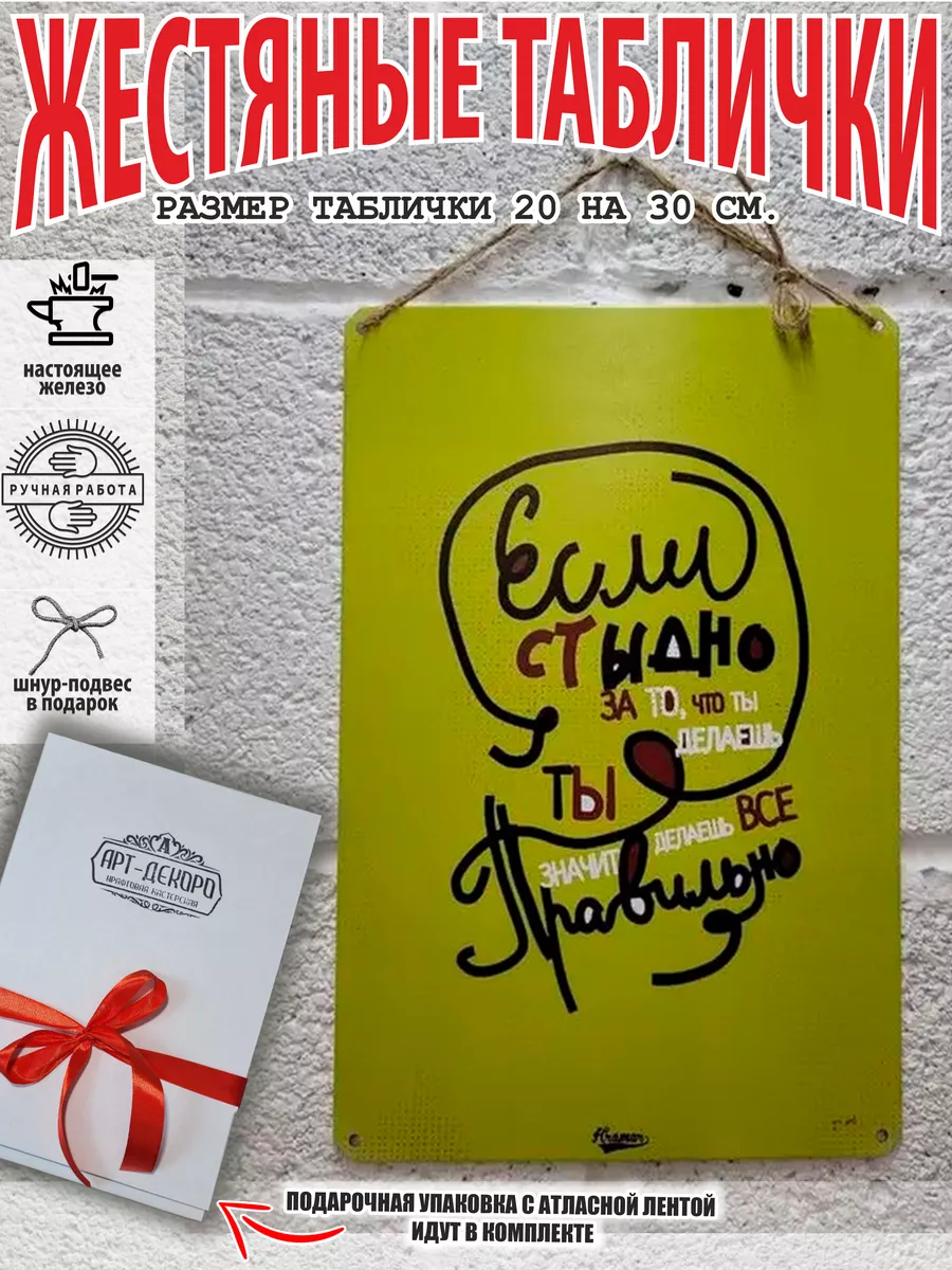 Железная жестяная табличка ручной работы, выполнена из 100% металла имеет классический размер 20*30 см. Края загнуты на 5 мм внутрь. Изображение наносится прямо на железо. Яркие насыщенные и объемные цвета. Табличку можно использовать как в помещении, так и на улице она не боится влаги. Варианты крепления таблички: на саморезы-шурупы, в табличке по углам имеются отверстия или на шнур-подвес из натурального джута, который идёт в подарок. Сделано в России. Упакована табличка в прозрачный открывающийся пакет для защиты от царапин при транспортировке. Внешняя дополнительная эко-упаковка из картона, подходит для подарка. Вся коллекция табличек в нашем магазине, их более 15 000 видов табличек из разный коллекций, каждый найдет себе по душе! Добавляйте товар в избранное, что бы первыми узнавать о скидках и новинках.
