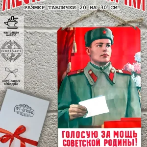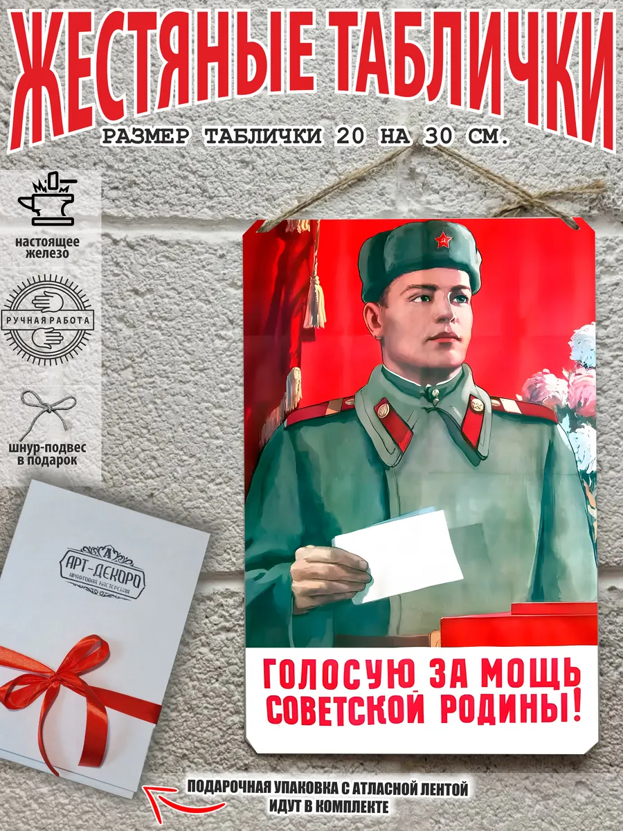 СССР Железная жестяная табличка ручной работы, выполнена из 100% металла имеет классический размер 20*30 см. Края загнуты на 5 мм внутрь. Изображение наносится прямо на металл. Яркие насыщенные и объемные цвета. Можно использовать как в помещении, так и на улице она не боится влаги. Варианты крепления : на саморезы-шурупы, по углам имеются отверстия или на шнур-подвес из натурального джута, который идёт в подарок. Сделано в России. Упакована в прозрачный открывающийся пакет для защиты от царапин при транспортировке. Внешняя дополнительная эко-упаковка из картона, подходит для подарка. Плакат советский — отличный подарок и стильный декор любого интерьера. Сувенир советская агитация — хороший презент. Картинка советская пропаганда — это отличный декор любого интерьера. Табличка на стену портрет Сталин Ленин — украшение кухни, дома, офиса, кафе, кофейни. Картина советский союз этот ретро стиль который всегда в моде. Подарок начальнику, другу, винтажный ретро советский постер на жести. Декоративная жесть это картина для квартиры и дачи. Вся коллекция табличек с тематикой советские плакаты в нашем профиле в бренде СССР. Так же в нашем магазине более 15 000 видов табличек из разный коллекций, каждый найдет себе по душе! Добавляйте товар в избранное, что бы первыми узнавать о скидках и новинках.