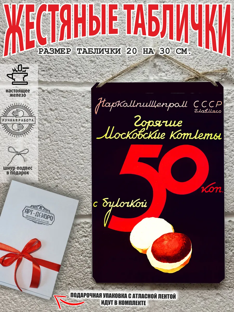 Обратите внимание! У нас все таблички идут сериями, можно создать отличную композицию в одном стиле. Кроме того, таблички это стильный и недорогой подарок по любому поводу. СССР Железная жестяная табличка ручной работы, выполнена из 100% металла имеет классический размер 20*30 см. Края загнуты на 5 мм внутрь. Изображение наносится прямо на металл. Яркие насыщенные и объемные цвета. Можно использовать как в помещении, так и на улице она не боится влаги. Варианты крепления : на саморезы-шурупы, по углам имеются отверстия или на шнур-подвес из натурального джута, который идёт в подарок. Сделано в России. Упакована в прозрачный открывающийся пакет для защиты от царапин при транспортировке. Внешняя дополнительная эко-упаковка из картона, подходит для подарка. Плакат советский — отличный подарок и стильный декор любого интерьера. Сувенир советская агитация — хороший презент. Картинка советская пропаганда — это отличный декор любого интерьера. Табличка на стену портрет Сталин Ленин — украшение кухни, дома, офиса, кафе, кофейни. Картина советский союз этот ретро стиль который всегда в моде. Подарок начальнику, другу, винтажный ретро советский постер на жести. Декоративная жесть это картина для квартиры и дачи. Вся коллекция табличек с тематикой советские плакаты в нашем профиле в бренде СССР. Так же в нашем магазине более 15 000 видов табличек из разный коллекций, каждый найдет себе по душе! Добавляйте товар в избранное, что бы первыми узнавать о скидках и новинках