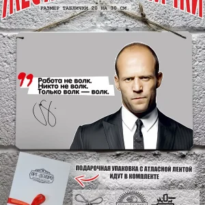 Выдуманные фразы Джейсона Стэтхэма на русском языке стали культом в интернете по всему миру. Мы предлагаем уникальный дизайн фото портрет Джейсон Стэтхэм автограф и цитата по любому случаю из 100% металла от нашего бренда будет прекрасным украшением для квартиры, дома, офиса, бара или кафе. Сочетая в себе эстетику и прочность, декоративная металлические таблички являются непременным элементом декора как для внутренних помещений, так и для уличных зон. Жестяная табличка от Арт-Декоро уникальный продукт от нашего дизайнера крепится на саморезы, шурупы или на специальный шнур из натурального джута который идет в комплекте с каждым заказом как бесплатный подарок, что позволяет разнообразить способы использования. Плакаты с приколами про Джейсона Стэтхема можно повесить на стену в гостиной, спальне, кухне или на улице, на работе в офисе, чтобы создать атмосферу, которая отражает вашу индивидуальность. Табличка с юмором Джейсон Стэтхэм упакована в подарочную упаковку — что делает ее готовым подарком по любому поводу. Таблички можно мыть, они не выцветают долгие годы. Мы гордимся тем, что каждое изделие изготовлено из настоящего металла, краска наносится прямо на железо. Это гарантирует ее долговечность и надежность. Красивая и изысканная отделка обеспечивает эффектный внешний вид и придает обстановке особое очарование. Джейсон Стэтхэм — серия табличек в едином стиле с разными выражениями позволдяет собрать коллекцию для создания уникального интерьера