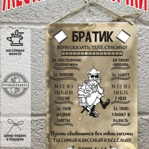 Железная табличка правила дома, правила гаража, правила работы из 100% металла от нашего бренда будет прекрасным украшением для квартиры, дома, офиса, бара или кафе. Таблички — это стильный и универсальный подарок gift box по любому поводу. Сочетая в себе эстетику и прочность, декоративная жестяная табличка является непременным элементом декора как внутренних помещений, так и уличных зон. Выберите из нашего широкого ассортимента аксессуар семейные правила, кодекс семейных правил, который подойдет именно вам. Наши изделия забавные картинки, прикольные таблички с надписями, приколы порадуют не только взрослых, но и детей. Постер Арт-декоро домашние правила family, общие правила дома крепится на саморезы, шурупы или специальный шнур из натурального джута, который идёт в комплекте с каждым заказом как бесплатный подарок. Всё это позволяет разнообразить способы использования. Вы можете повесить табличку нормы правила семьи, мотивирующие надписи на стену в гостиной, спальне, кухне, а также на улице, чтобы создать атмосферу, которая отражает вашу индивидуальность. Кроме основной упаковки наш бренд предлагает Вам еще одну – подарочную эко упаковку из белого картона с фирменным логотипом и атласную ленту с бантом. Заказывайте уже готовый недорогой подарок, набор для любого случая. Всё, что вам останется сделать после получения товара – убрать защитную упаковку, повязать бант – идеальный подарок готов! Внешняя упаковка — это трехслойный картон, который защитит ваш сувенир при транспортировке. Сама табличка правила поведения дома — в блестящем пакете. Выберите у нас стильный презент другу, подруге, маме, папе, брату, сестре, сыну, дочери, мужу, жене, девушке, парню, коллеге или начальнику. Картины правила семьи в подарочной упаковке на день рождение, 8 марта, 23 февраля, 9 мая, юбилей или новый год дарить легко. Обратите внимание! У нас все таблички идут сериями, что позволяет создать отличную композицию в одном стиле. Следует особо отметить, что если вы хотите заказать две или больше табличек так, чтобы каждая из них была в отдельной подарочной упаковке – в таком случае товар нужно оформлять разными заказами. Таблички можно мыть, они не выцветают долгие годы. Краска наносится прямо на железо. Это не наклейка, что гарантирует ее долговечность и надежность. Красивая и изысканная отделка обеспечивает эффектный внешний вид и придает обстановке особое очарование. Подарите возможность добавить изюминку в интерьер при помощи табличек правила членов семьи, основные семейные правила. Превратите пространство в уникальное и уютное, которое будет отличаться от всех остальных. В нашем магазине Вы найдёте огромный выбор декора интерьера на любой вкус!