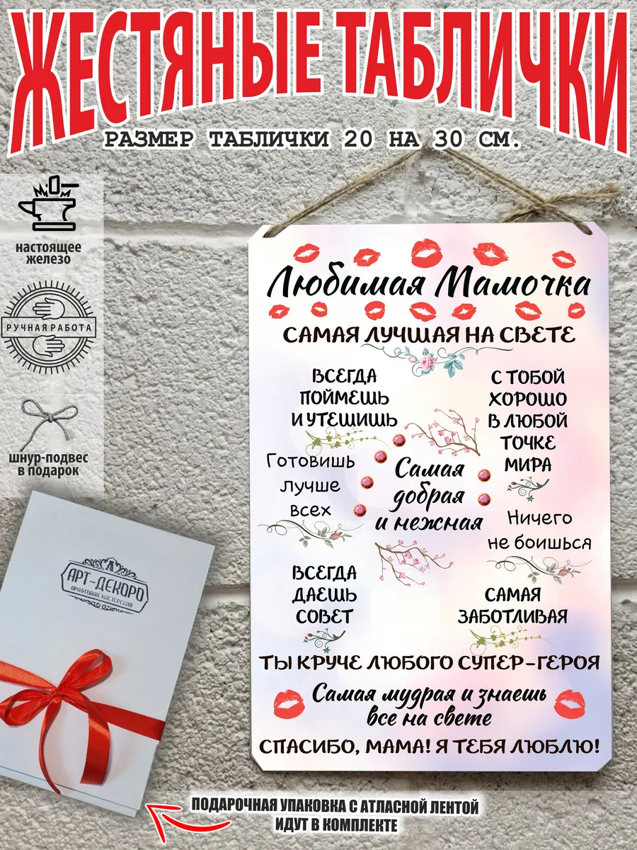 Постер «Правила дома» от бренда «Арт-Декоро» станет прекрасным подарком для мамы на любой праздник. Этот стильный и оригинальный декор для стен украсит интерьер и добавит уют в любой комнате. Изготовленный из прочного металла с аккуратной табличкой и натуральным джутовым шнуром для подвеса, постер «Правила дома» станет не только украшением, но и напоминанием о теплых семейных ценностях. Он упакован в эко-упаковку из картона, что делает его еще более привлекательным и заботливым подарком.