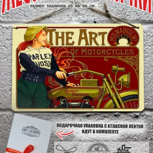 Интерьерная жестяная картина на стену с изображением мотоцикла выполнена из 100% металла, размером 30×20 см станет отличным решением для тех, кто ценит искусство и стильный дизайн.