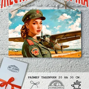 Представляем вам стильные и эффектные жестяные таблички с изображением девушек в армейском стиле. Наши постеры, включая жестяные таблички, выполнены из металла, который отличается высоким качеством и долговечностью. Размер 20×30 см позволяет легко вписать наши картины в любой интерьер, будь то кухня, гостиная, офис или кафе. Почему стоит выбрать наш постер для интерьера? Яркие и насыщенные цвета не выгорают на солнце и делают ваше пространство выразительным и уникальным. Легкость в уходе: наши картины для интерьера, таблички на дверь и постеры на стену можно легко мыть. Они не боятся влаги, что позволяет использовать их как в помещениях, так и на улице. Удобные варианты крепления: табличка может быть установлена на саморезы или повешена на шнур из натурального джута, который идет в комплекте. Упаковка: каждая табличка аккуратно упакована в защитный пакет и дополнительно завернута в эко-картон, что делает её отличным подарком на любой случай – от дня рождения до новоселья. Мы гордимся тем, что предлагаем более 15 000 уникальных дизайнов, включая постеры на стену для интерьера, постер на заказ и прикольные металлические таблички, чтобы каждый мог найти что-то для себя. Не упустите возможность сделать свой дом стильным – добавляйте товары в избранное, чтобы первыми узнавать о скидках и новинках! Создайте атмосферу уюта и стиля с нашими металлическими картинами и постерами для интерьера уже сегодня.