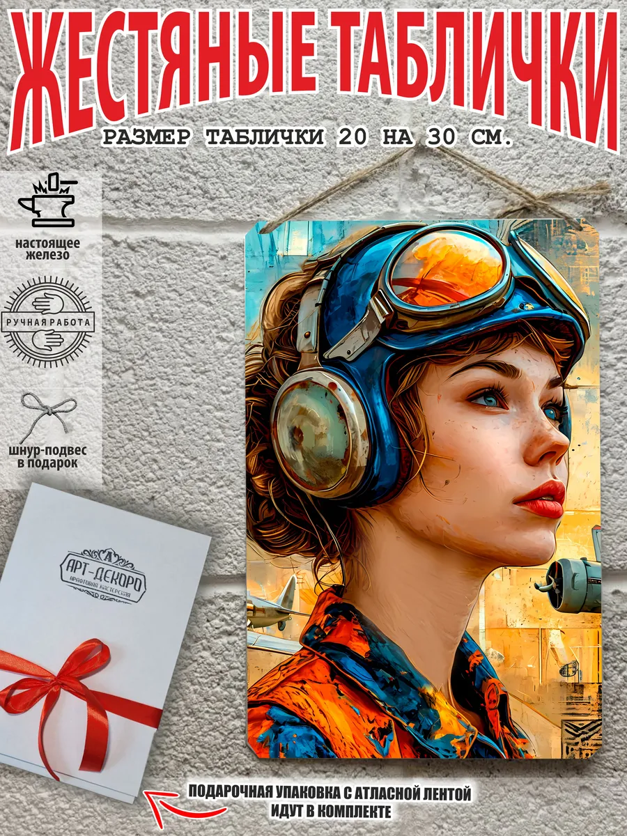 Представляем вам стильные и эффектные жестяные таблички с изображением девушек в армейском стиле. Наши постеры, включая жестяные таблички, выполнены из металла, который отличается высоким качеством и долговечностью. Размер 20×30 см позволяет легко вписать наши картины в любой интерьер, будь то кухня, гостиная, офис или кафе. Почему стоит выбрать наш постер для интерьера? Яркие и насыщенные цвета не выгорают на солнце и делают ваше пространство выразительным и уникальным. Легкость в уходе: наши картины для интерьера, таблички на дверь и постеры на стену можно легко мыть. Они не боятся влаги, что позволяет использовать их как в помещениях, так и на улице. Удобные варианты крепления: табличка может быть установлена на саморезы или повешена на шнур из натурального джута, который идет в комплекте. Упаковка: каждая табличка аккуратно упакована в защитный пакет и дополнительно завернута в эко-картон, что делает её отличным подарком на любой случай – от дня рождения до новоселья. Мы гордимся тем, что предлагаем более 15 000 уникальных дизайнов, включая постеры на стену для интерьера, постер на заказ и прикольные металлические таблички, чтобы каждый мог найти что-то для себя. Не упустите возможность сделать свой дом стильным – добавляйте товары в избранное, чтобы первыми узнавать о скидках и новинках! Создайте атмосферу уюта и стиля с нашими металлическими картинами и постерами для интерьера уже сегодня.