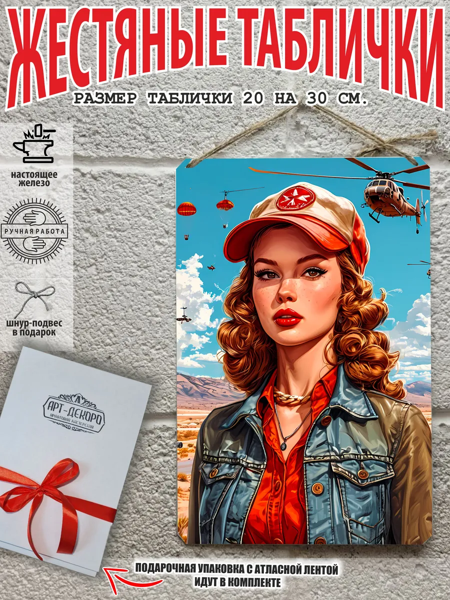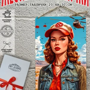 Представляем вам стильные и эффектные жестяные таблички с изображением девушек в армейском стиле. Наши постеры, включая жестяные таблички, выполнены из металла, который отличается высоким качеством и долговечностью. Размер 20×30 см позволяет легко вписать наши картины в любой интерьер, будь то кухня, гостиная, офис или кафе. Почему стоит выбрать наш постер для интерьера? Яркие и насыщенные цвета не выгорают на солнце и делают ваше пространство выразительным и уникальным. Легкость в уходе: наши картины для интерьера, таблички на дверь и постеры на стену можно легко мыть. Они не боятся влаги, что позволяет использовать их как в помещениях, так и на улице. Удобные варианты крепления: табличка может быть установлена на саморезы или повешена на шнур из натурального джута, который идет в комплекте. Упаковка: каждая табличка аккуратно упакована в защитный пакет и дополнительно завернута в эко-картон, что делает её отличным подарком на любой случай – от дня рождения до новоселья. Мы гордимся тем, что предлагаем более 15 000 уникальных дизайнов, включая постеры на стену для интерьера, постер на заказ и прикольные металлические таблички, чтобы каждый мог найти что-то для себя. Не упустите возможность сделать свой дом стильным – добавляйте товары в избранное, чтобы первыми узнавать о скидках и новинках! Создайте атмосферу уюта и стиля с нашими металлическими картинами и постерами для интерьера уже сегодня.