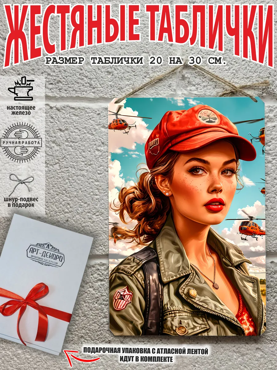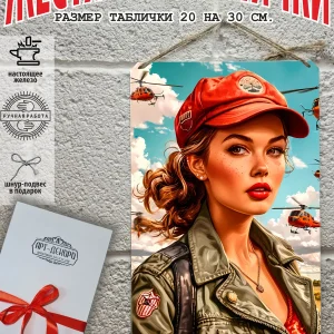 Представляем вам стильные и эффектные жестяные таблички с изображением девушек в армейском стиле. Наши постеры, включая жестяные таблички, выполнены из металла, который отличается высоким качеством и долговечностью. Размер 20×30 см позволяет легко вписать наши картины в любой интерьер, будь то кухня, гостиная, офис или кафе. Почему стоит выбрать наш постер для интерьера? Яркие и насыщенные цвета не выгорают на солнце и делают ваше пространство выразительным и уникальным. Легкость в уходе: наши картины для интерьера, таблички на дверь и постеры на стену можно легко мыть. Они не боятся влаги, что позволяет использовать их как в помещениях, так и на улице. Удобные варианты крепления: табличка может быть установлена на саморезы или повешена на шнур из натурального джута, который идет в комплекте. Упаковка: каждая табличка аккуратно упакована в защитный пакет и дополнительно завернута в эко-картон, что делает её отличным подарком на любой случай – от дня рождения до новоселья. Мы гордимся тем, что предлагаем более 15 000 уникальных дизайнов, включая постеры на стену для интерьера, постер на заказ и прикольные металлические таблички, чтобы каждый мог найти что-то для себя. Не упустите возможность сделать свой дом стильным – добавляйте товары в избранное, чтобы первыми узнавать о скидках и новинках! Создайте атмосферу уюта и стиля с нашими металлическими картинами и постерами для интерьера уже сегодня.