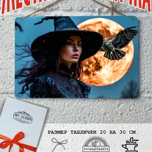 Постер «Ведьма» станет стильным и мистическим украшением вашего интерьера. Изготовленный из прочного металла, он приковывает взгляд своей оригинальной тематикой и качественной печатью. Постер поставляется в подарочной упаковке, включающей транспортировочную упаковку, экологичную упаковку из картона, металлическую табличку и шнур-подвес из натурального джута, что делает его прекрасным подарком для любителей эзотерики и мистических образов. Готовый подарок на хэллоуин, украшение дома на хэллоуин. Добавьте немного волшебства в свой дом с этим уникальным постером.