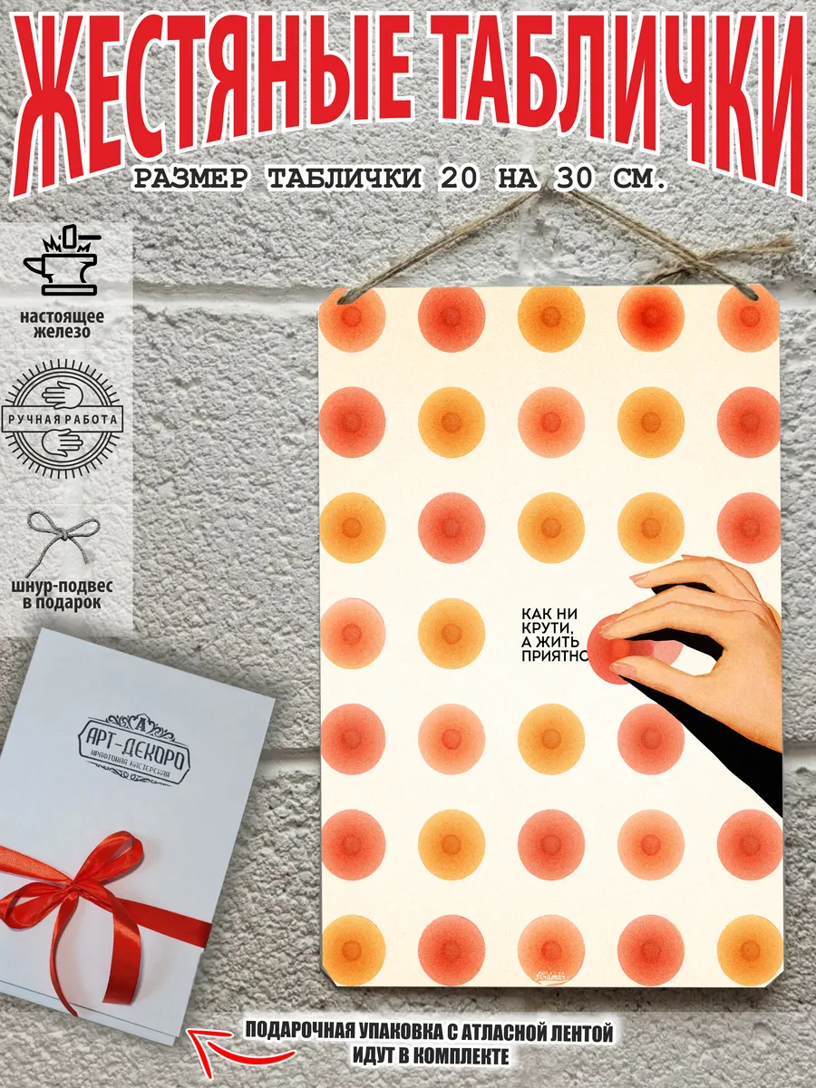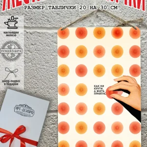 Обратите внимание! У нас все таблички идут сериями, можно создать отличную композицию в одном стиле. Кроме того, таблички это стильный и недорогой подарок по любому поводу. Прикольные штуки железная табличка картинки мотиваторы позитивные и демотиваторы из 100% металла от нашего бренда будет прекрасным украшением для квартиры, дома, офиса, бара или кафе. Мотивация это прикол, часть нашей жизни, картина мотиватор всегда улучшает настроение. Сочетая в себе эстетику и прочность, декоративная металлические мотивационные карточки являются непременным элементом декора как для внутренних помещений, так и для уличных зон. Выберите из нашего широкого ассортимента аксессуар, который подойдет именно вам. Жестяная табличка Арт-Декоро крепится на саморезы, шурупы или на специальный шнур из натурального джута который идет в комплекте с каждым заказом как бесплатный подарок, что позволяет разнообразить способы использования. Плакаты с приколами можно повесить на стену в гостиной, спальне, кухне или на улице, чтобы создать атмосферу, которая отражает индивидуальность. Таблички можно мыть, они не выцветают долгие годы. Картина открытки постер плакат стикеры наклейки приколы мотивация все это сочетается в наших изделиях. Мы гордимся тем, что каждое изделие изготовлено из настоящего металла, краска наносится прямо на железо. Это гарантирует ее долговечность и надежность. Красивая и изысканная отделка обеспечивает эффектный внешний вид и придает обстановке особое очарование. Подарите возможность добавить изюминку в интерьер и превратите пространство в уникальное, а также уютное место, которое будет отличаться от всех остальных. В нашем магазине Вы найдёте большой выбор декора интерьера и создадите превосходную обстановку.