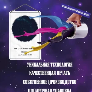 Всё продумано до мелочей. Человек, которому вы подарите индивидуальную карту звездного неба по его дате рождения будет точно удивлен. На постер будет указана дата, время, а так же город и милая надпись. Такой постер станет отличным подарком для друзей, родных или даже для вас самих. Он поможет выразить свои чувства и напомнить о счастливых моментах. Удивите своих близких этой нестандартной и трогательной идеей, которая будет вызывать только положительные эмоции.