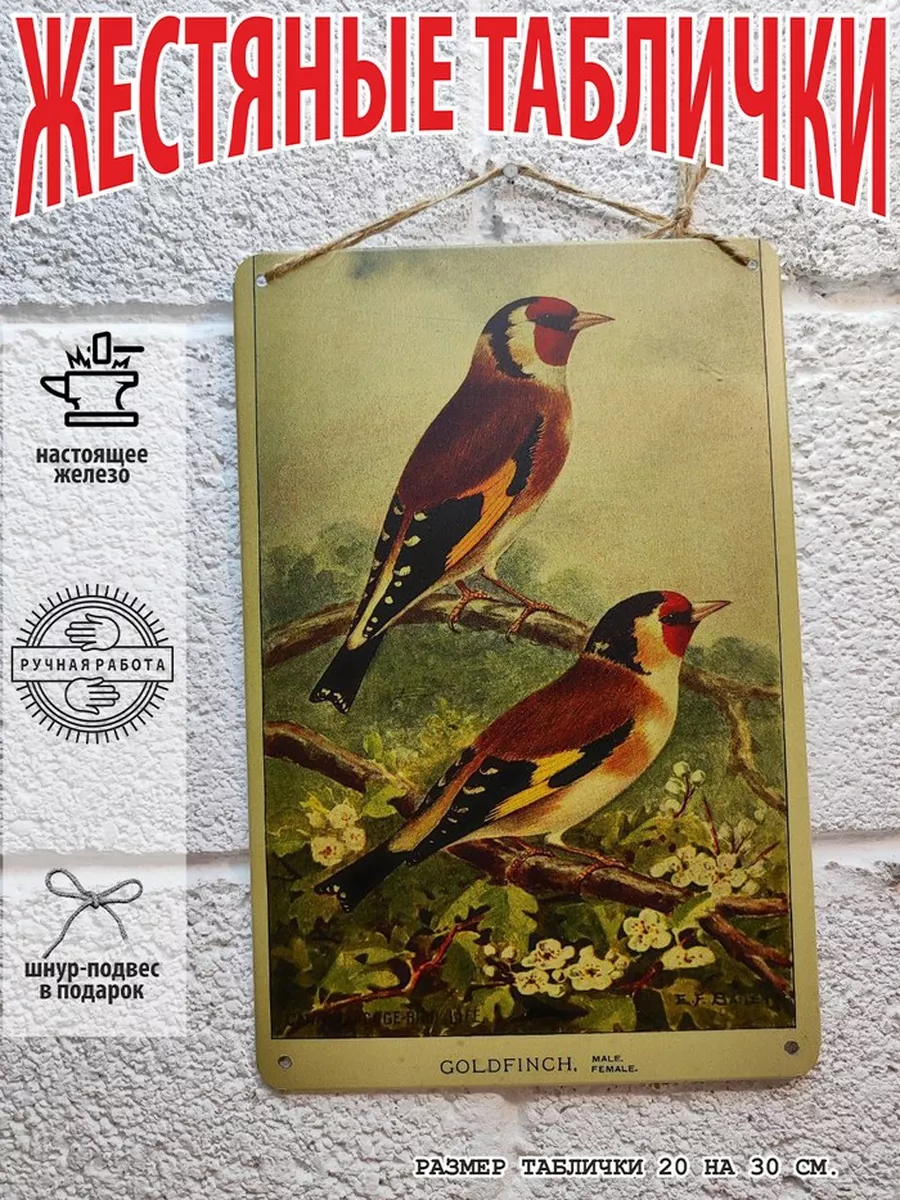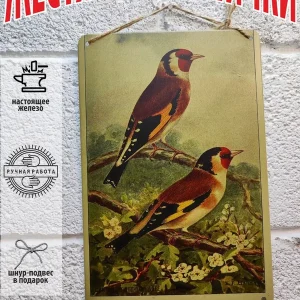 Железная винтажная картина с изображением птиц как домашних так и диких ручной работы размером 20*30см. выполнена из 100% металла.Изображение матовое, наносится прямо на железо. Данную табличку постер можно использовать как в помещении, так и на улице.