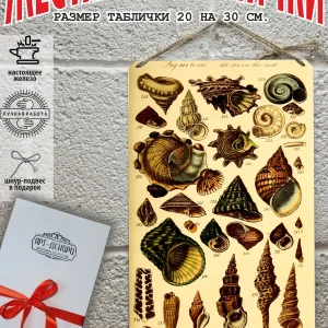 Жестяная винтажная картина с изображением ракушек ручной работы размером 20*30см. выполнена из 100% металла.Изображение матовое, наносится прямо на железо.Данную табличку постер можно использовать как в помещении, так и на улице.Вертикальная картина цветы для кухни или прихожей зрительно увеличивает высоту потолков.