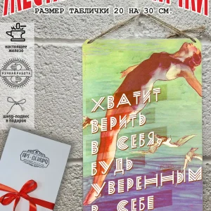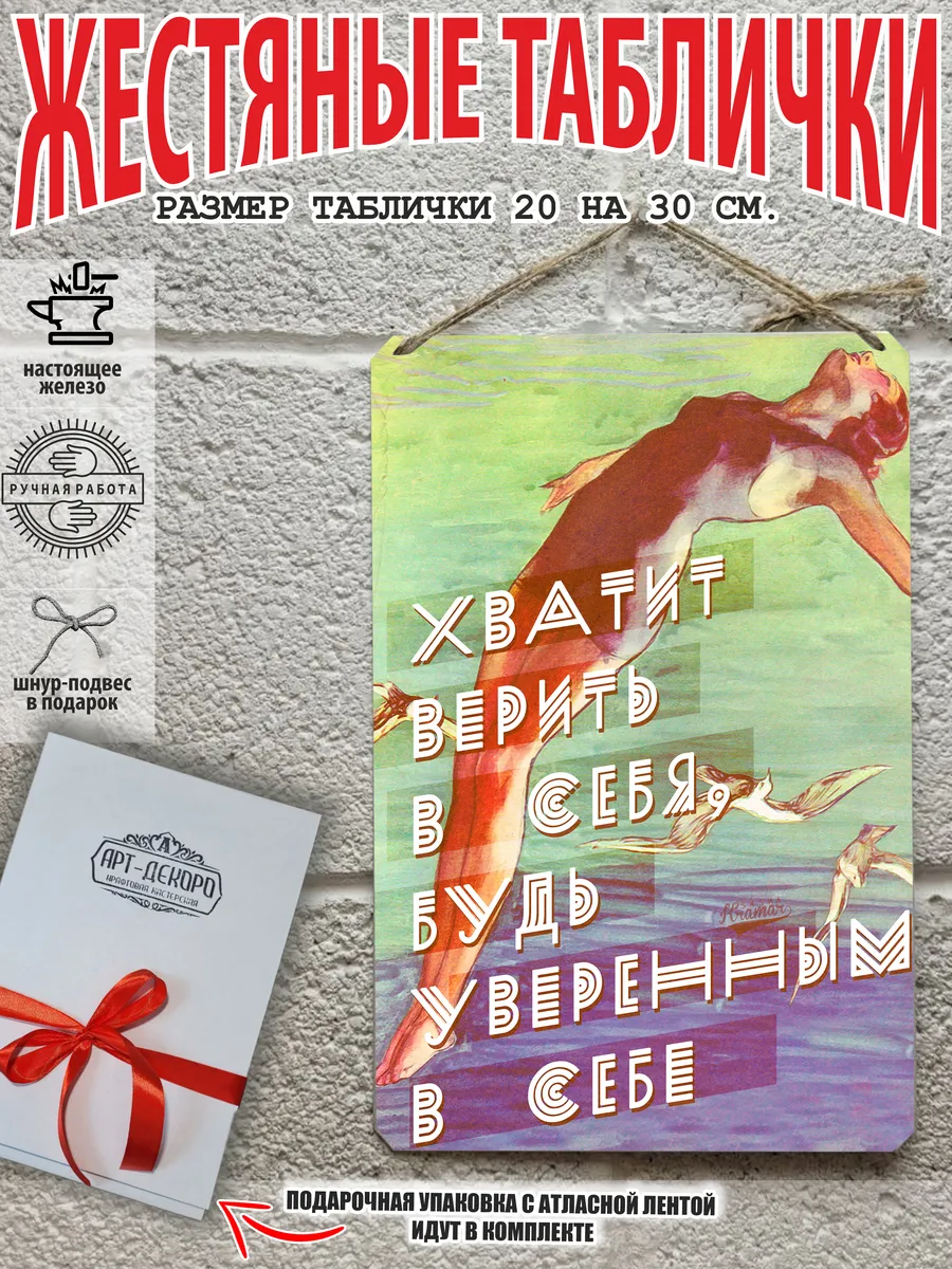 Обратите внимание! У нас все таблички идут сериями, можно создать отличную композицию в одном стиле. Кроме того, таблички это стильный и недорогой подарок по любому поводу. Прикольные штуки железная табличка картинки мотиваторы позитивные и демотиваторы из 100% металла от нашего бренда будет прекрасным украшением для квартиры, дома, офиса, бара или кафе. Мотивация это прикол, часть нашей жизни, картина мотиватор всегда улучшает настроение. Сочетая в себе эстетику и прочность, декоративная металлические мотивационные карточки являются непременным элементом декора как для внутренних помещений, так и для уличных зон. Выберите из нашего широкого ассортимента аксессуар, который подойдет именно вам. Жестяная табличка Арт-Декоро крепится на саморезы, шурупы или на специальный шнур из натурального джута который идет в комплекте с каждым заказом как бесплатный подарок, что позволяет разнообразить способы использования. Плакаты с приколами можно повесить на стену в гостиной, спальне, кухне или на улице, чтобы создать атмосферу, которая отражает индивидуальность. Таблички можно мыть, они не выцветают долгие годы. Картина открытки постер плакат стикеры наклейки приколы мотивация все это сочетается в наших изделиях. Мы гордимся тем, что каждое изделие изготовлено из настоящего металла, краска наносится прямо на железо. Это гарантирует ее долговечность и надежность. Красивая и изысканная отделка обеспечивает эффектный внешний вид и придает обстановке особое очарование. Подарите возможность добавить изюминку в интерьер и превратите пространство в уникальное, а также уютное место, которое будет отличаться от всех остальных. В нашем магазине Вы найдёте большой выбор декора интерьера и создадите превосходную обстановку.