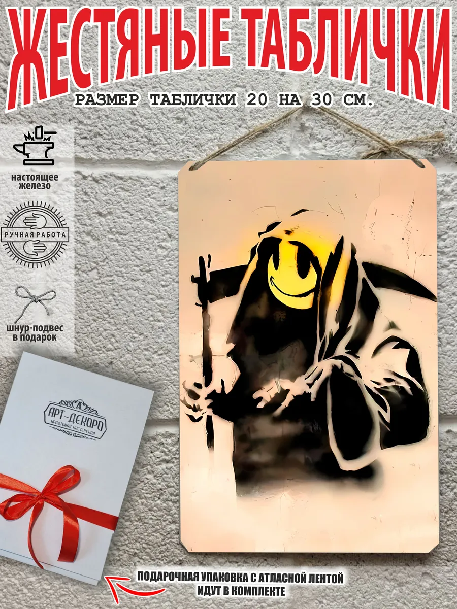 Представляем вам уникальную серию металлических картин, вдохновленных искусством Бэнкси! В нашей коллекции вы найдете известные работы, включая «Бэнкси девочка с шаром», «Метатель цветов» и другие невероятные граффити, которые станут стильным украшением вашего интерьера. Каждая интерьерная табличка выполнена из 100% качественного металла и имеет классический размер 20×30 см, поэтому они легко вписываются в любое пространство.