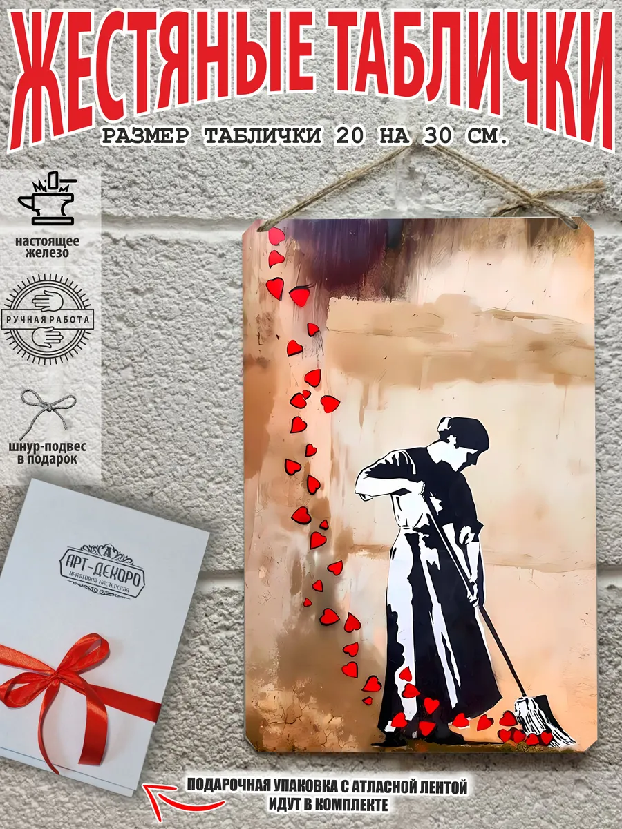 Представляем вам уникальную серию металлических картин, вдохновленных искусством Бэнкси! В нашей коллекции вы найдете известные работы, включая «Бэнкси девочка с шаром», «Метатель цветов» и другие невероятные граффити, которые станут стильным украшением вашего интерьера. Каждая интерьерная табличка выполнена из 100% качественного металла и имеет классический размер 20×30 см, поэтому они легко вписываются в любое пространство.