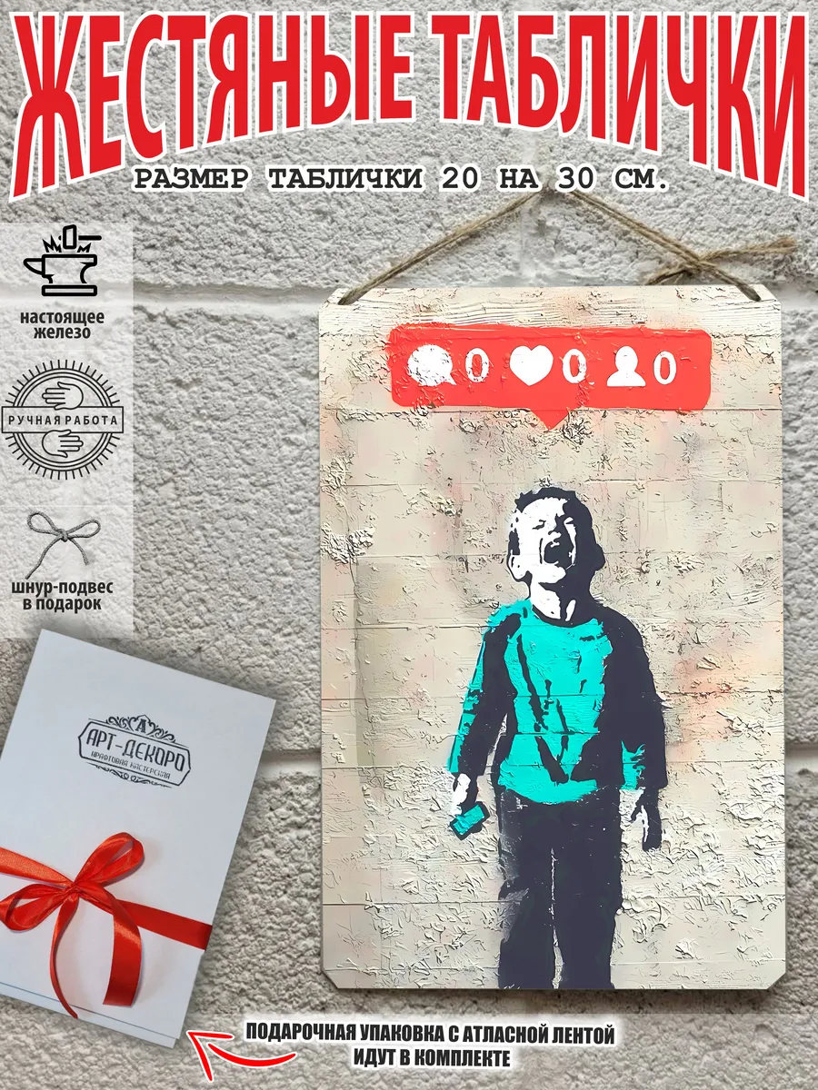 Представляем вам уникальную серию металлических картин, вдохновленных искусством Бэнкси! В нашей коллекции вы найдете известные работы, включая «Бэнкси девочка с шаром», «Метатель цветов» и другие невероятные граффити, которые станут стильным украшением вашего интерьера. Каждая интерьерная табличка выполнена из 100% качественного металла и имеет классический размер 20×30 см, поэтому они легко вписываются в любое пространство.