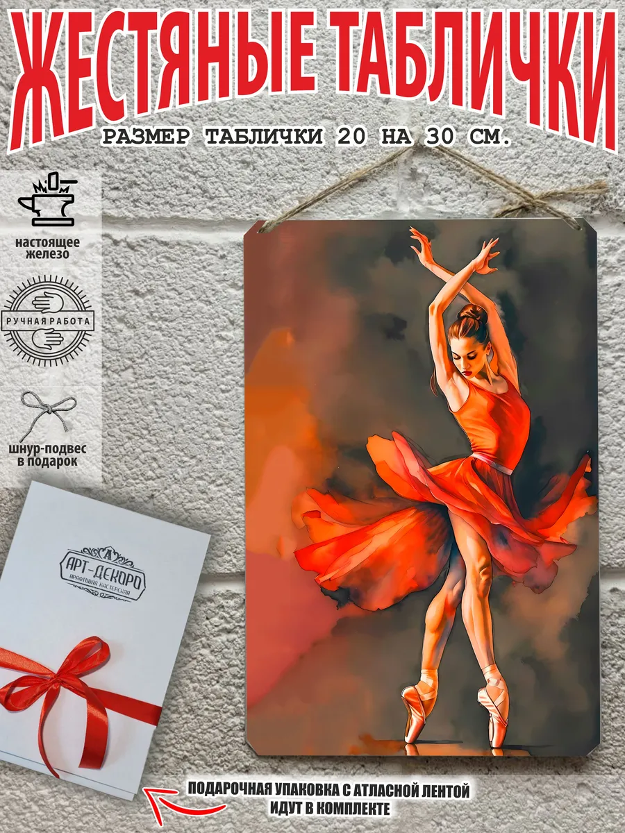 Стильные металлические таблички – это идеальный выбор для тех, кто хочет преобразить свой интерьер! Представляем вам уникальную серию жестяных табличек, а также элегантные картины с балериной. Эти изделия выполнены из 100% качественного металла и имеют классический размер 20×30 см, что позволяет легко вписать их в любое пространство – будь то кухня, гостиная, кабинет или даже кафе.