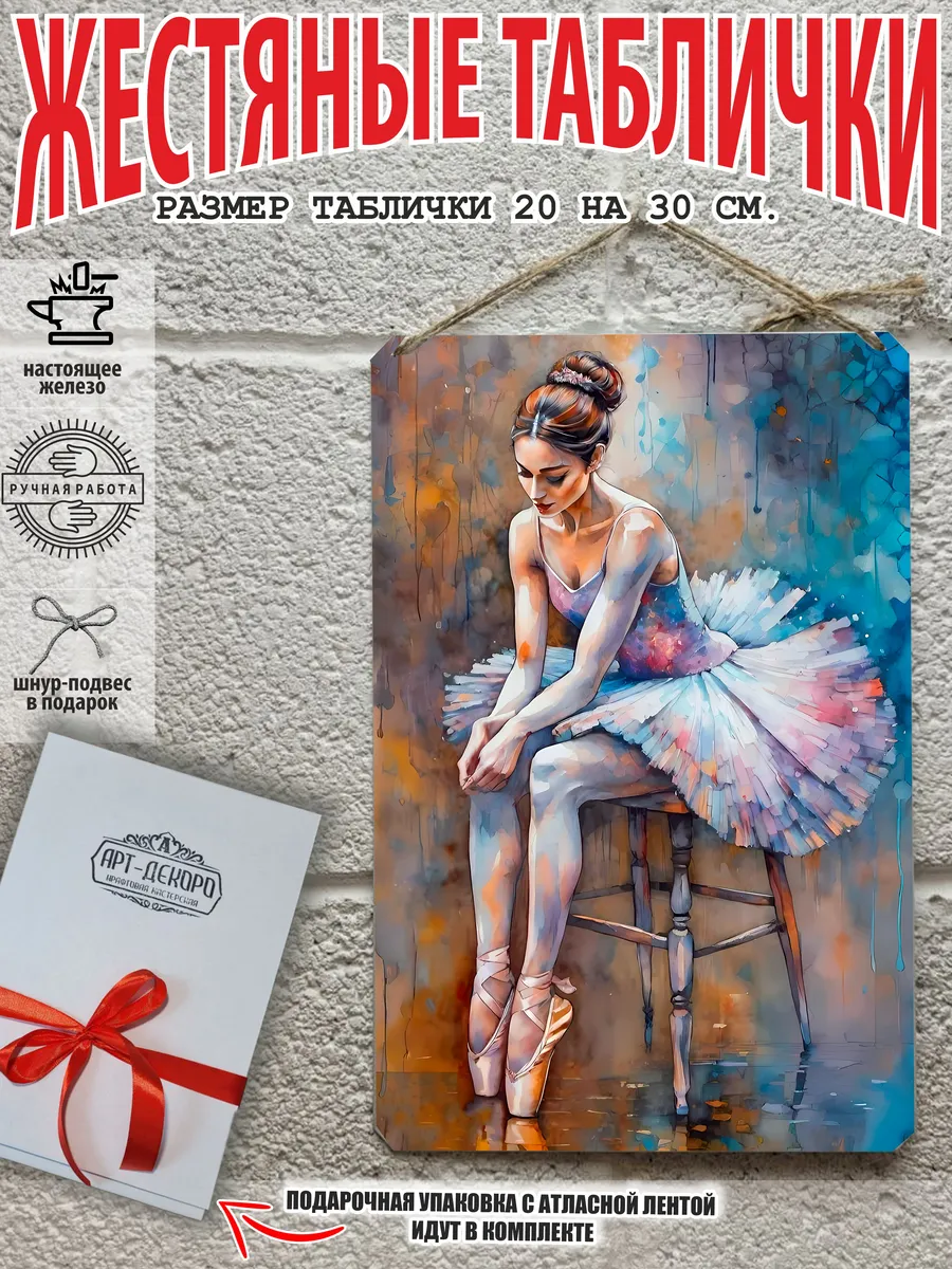 Стильные металлические таблички – это идеальный выбор для тех, кто хочет преобразить свой интерьер! Представляем вам уникальную серию жестяных табличек, а также элегантные картины с балериной. Эти изделия выполнены из 100% качественного металла и имеют классический размер 20×30 см, что позволяет легко вписать их в любое пространство – будь то кухня, гостиная, кабинет или даже кафе.