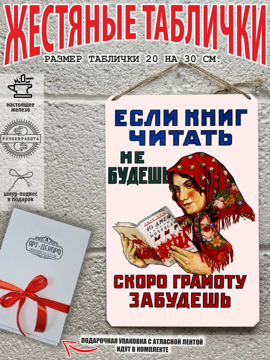 -Удобные варианты крепления:каждая табличка может быть установлена на саморезы или подвешена на шнуре из натурального джута, который идет в комплекте. Наши советские таблички и плакаты также отлично подойдут для декорирования стен.