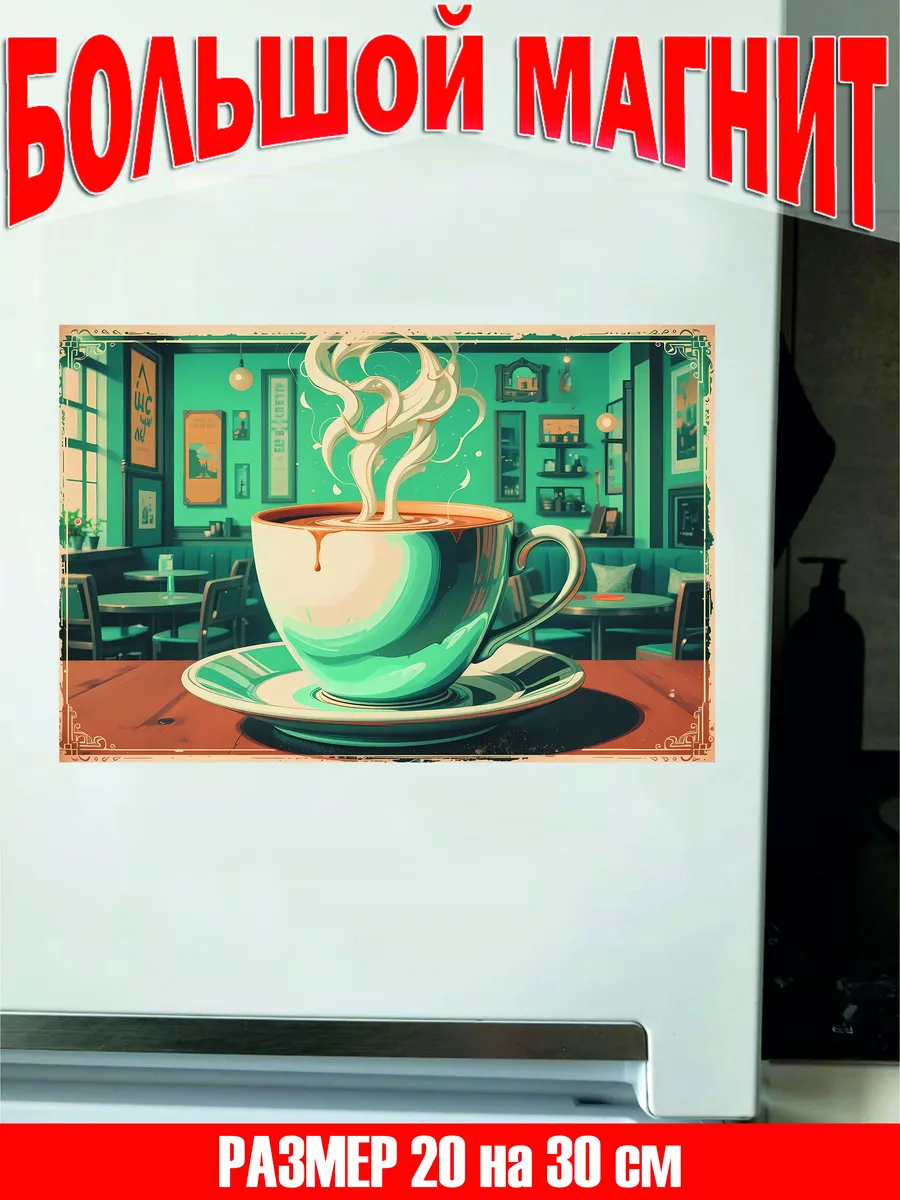 кофе большой магнит на холодильник