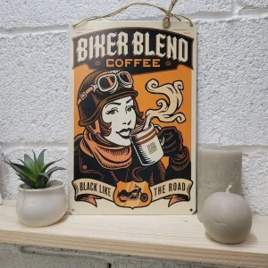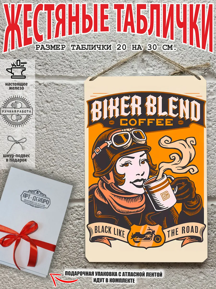 Кофе черный как дорога, ретро постер байкер
