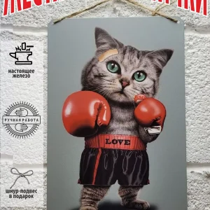 Железная табличка с котиками из 100% металла от нашего бренда будет прекрасным украшением для квартиры, дома, офиса, бара или кафе.
